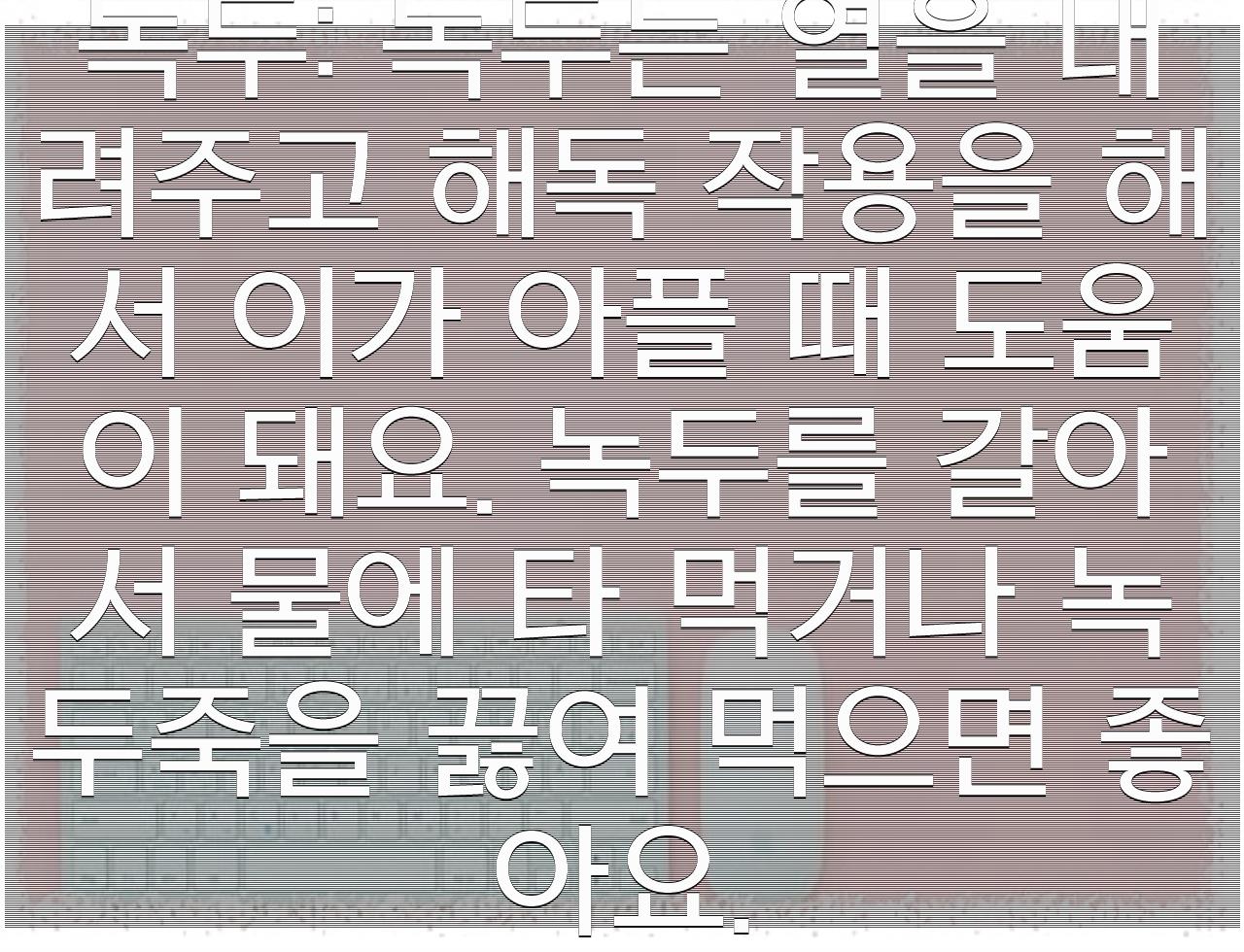 녹두: 녹두는 열을 내려주고 해독 작용을 해서 이가 아플 때 도움이 돼요. 녹두를 갈아서 물에 타 먹거나 녹두죽을 끓여 먹으면 좋아요.