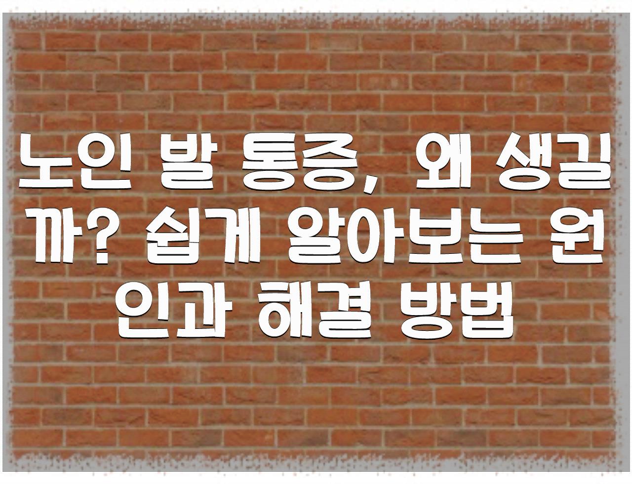 할머니, 할아버지 발이 아픈 이유? 자~ 그럼, 노인 발 통증, 왜 생길까? 쉽게 알아보는 원인과 해결 방법 관련 필요하신 분께 공유해 드려요.